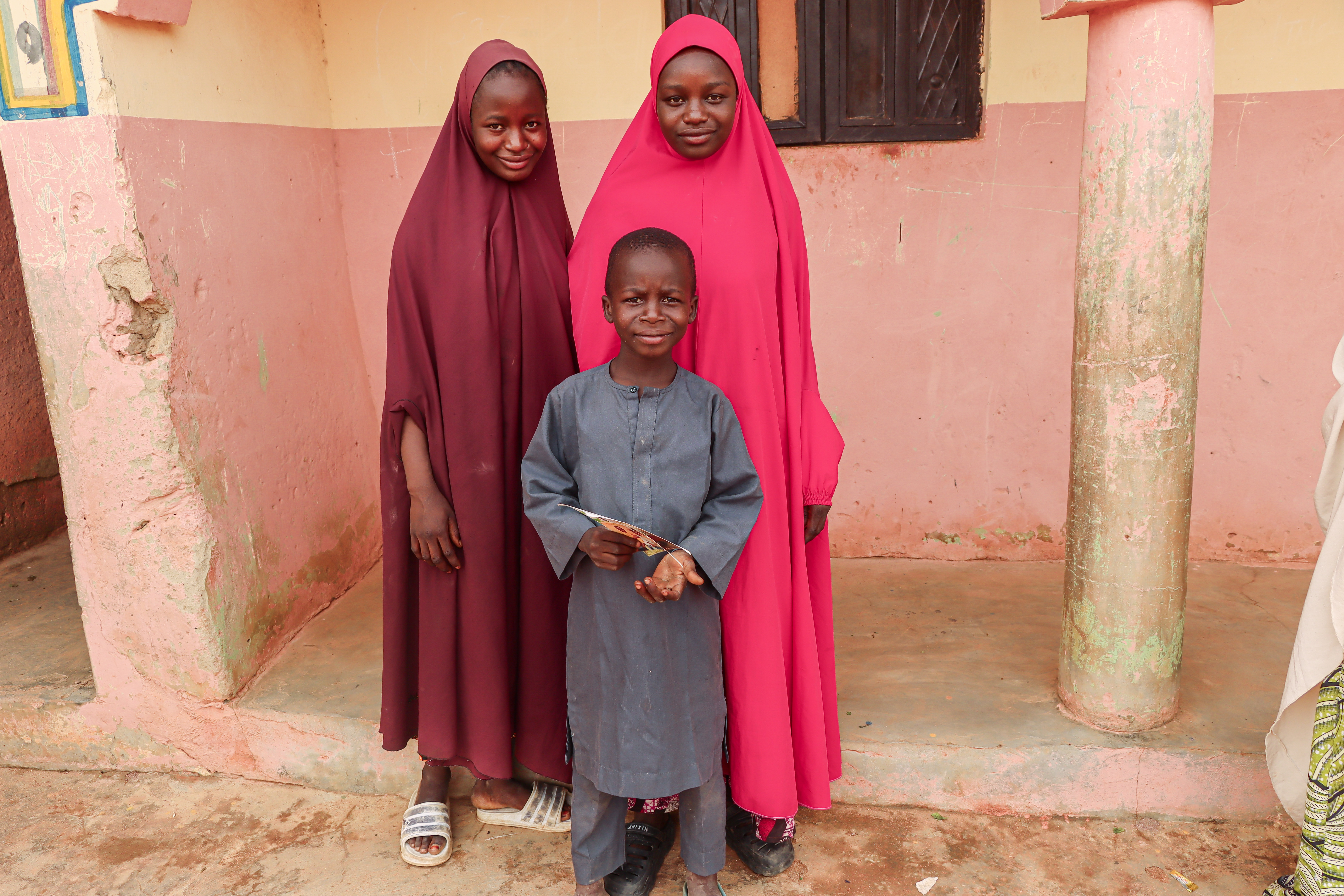 Three of Maimuna's children gazing into the camera for a photograph. Mogbonjubade Adesulure/Save the Children